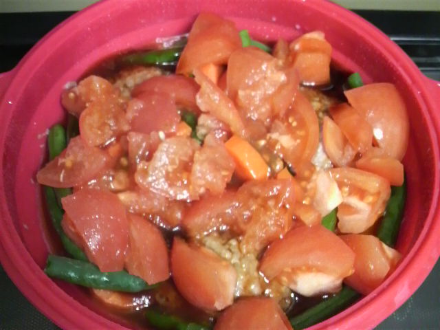 いんげんはクタクタになりすぎたのでトマトを入れるときでよかったかな?