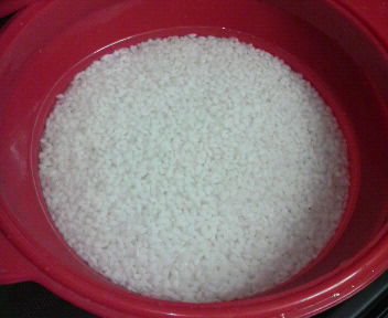 お米は洗ってスチーム鍋に入れ30分以上浸しておきます